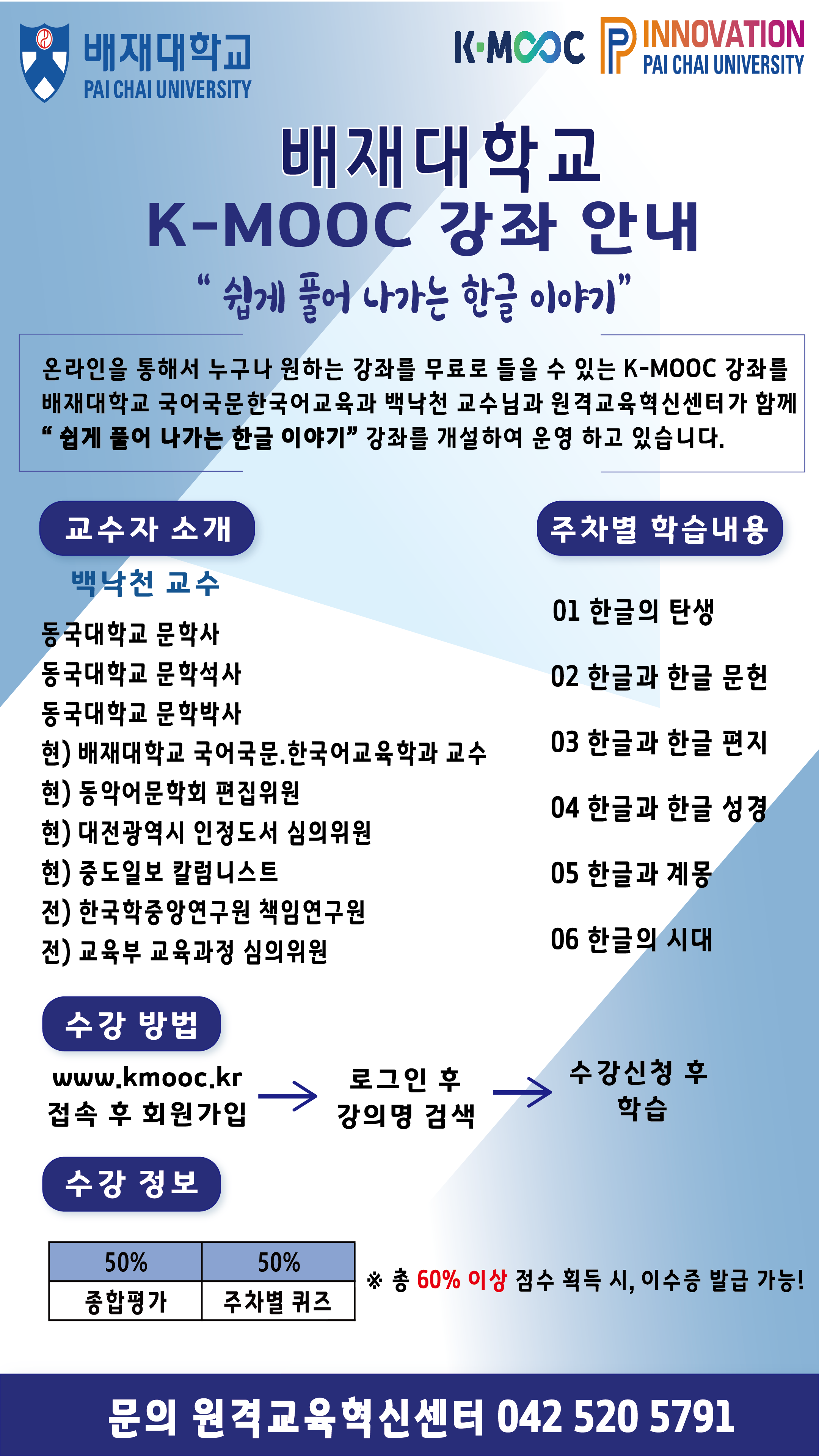- 배제대학교 2025년 2학기 K-MOOC 강좌 수강 안내