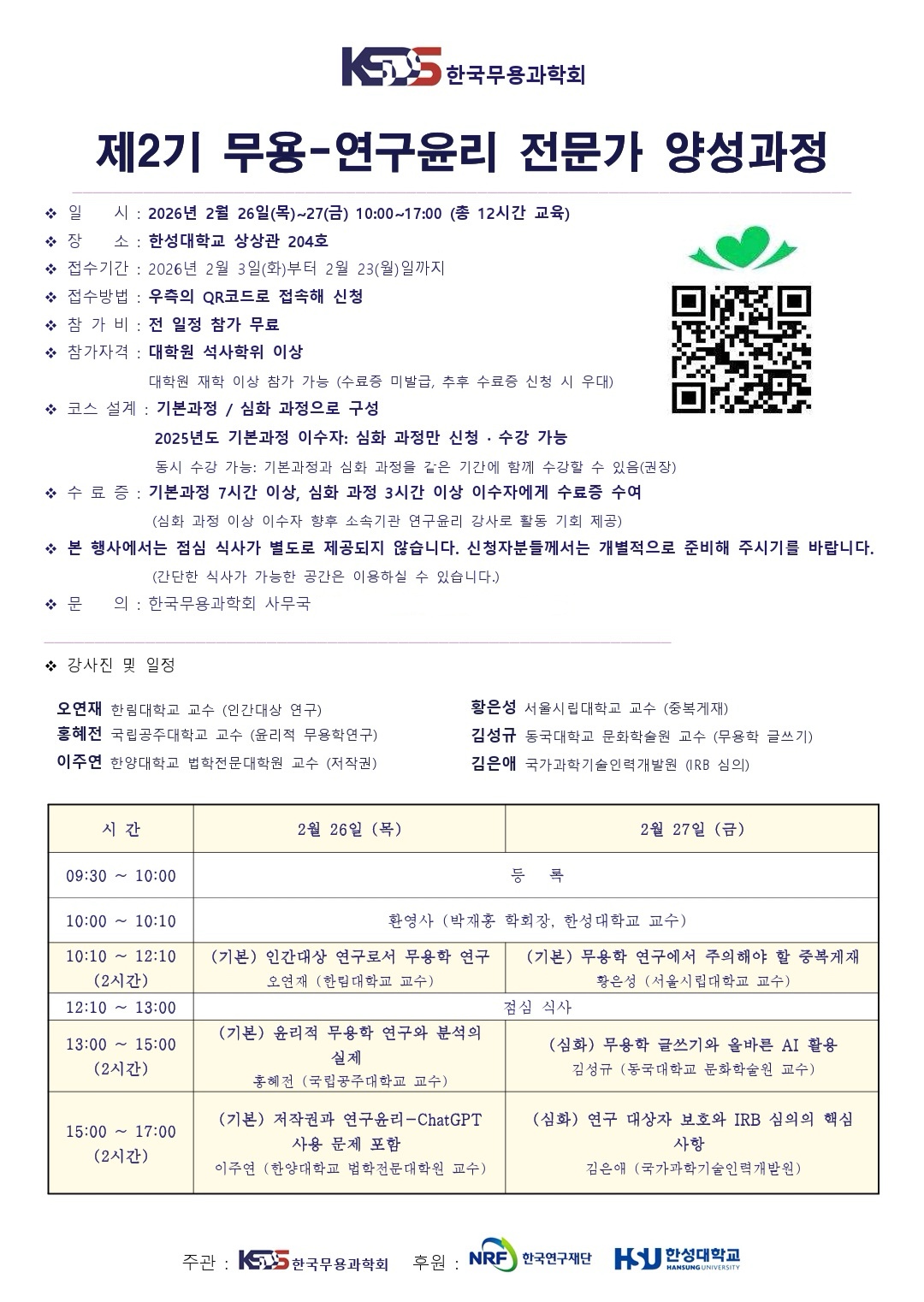 - [연수] 한국무용과학회 제2기 무용-연구윤리 전문가 양성과정 모집